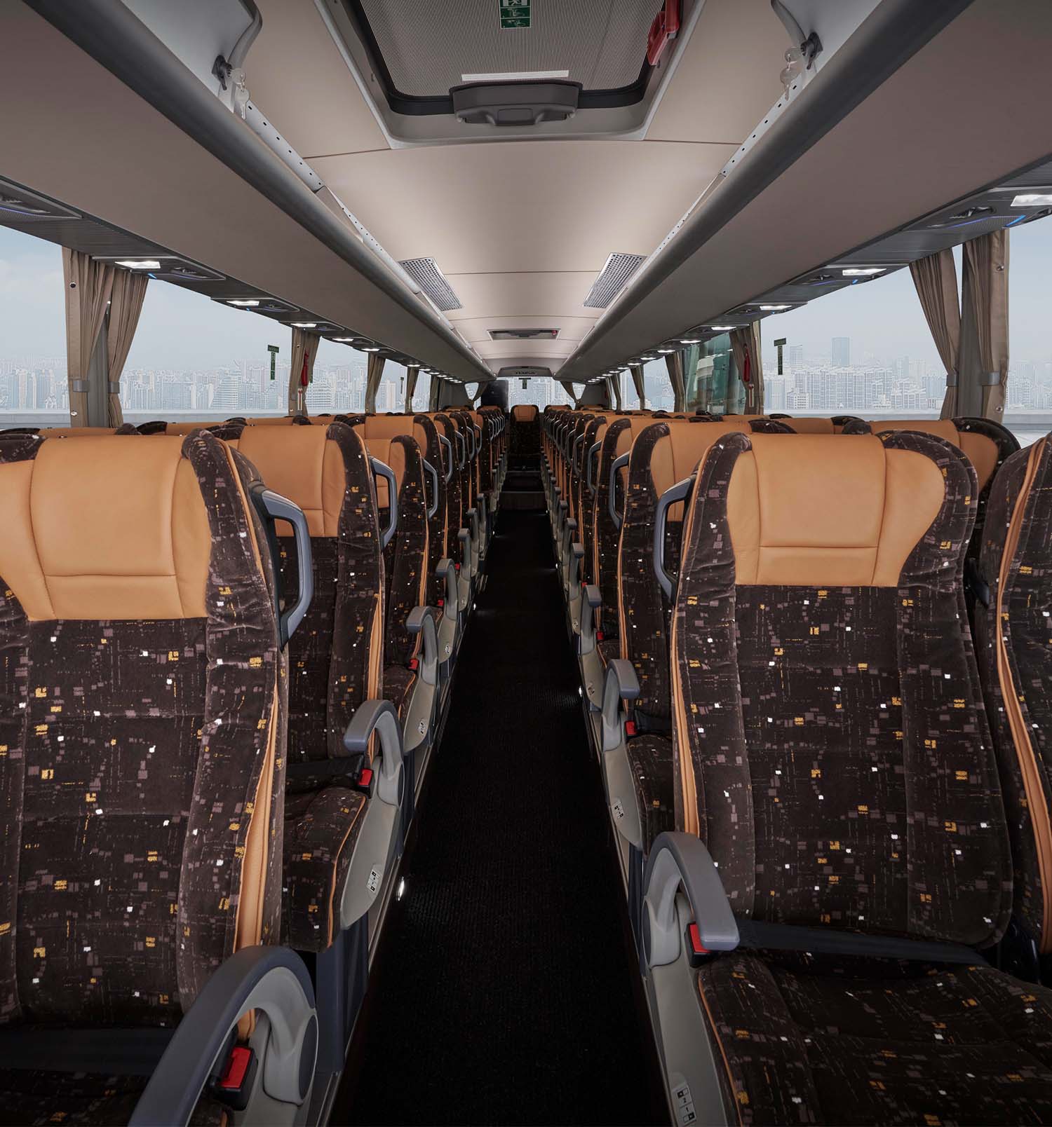 En el interior, los pasajeros disfrutan de escotillas de techo ventiladas, asientos modernos, un cuadro digital con pantalla de cámara trasera, tomas USB-A/C dobles en cada asiento y amplios portaequipajes superiores, ofreciendo confort, estilo e innovación en cada kilómetro.