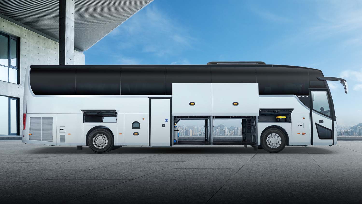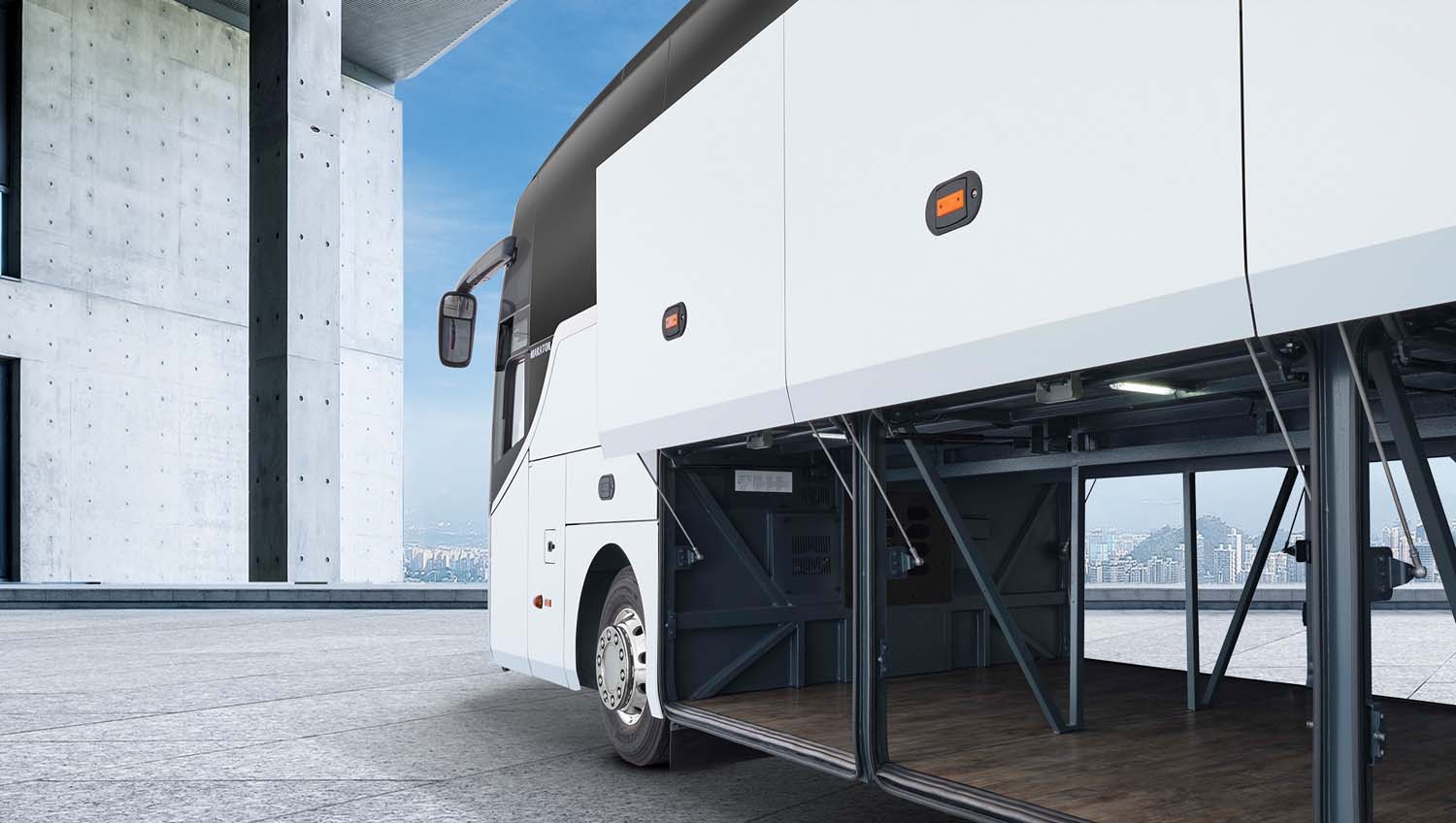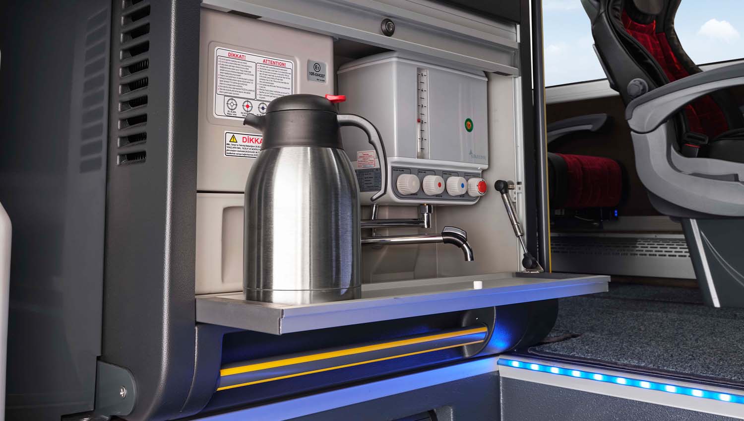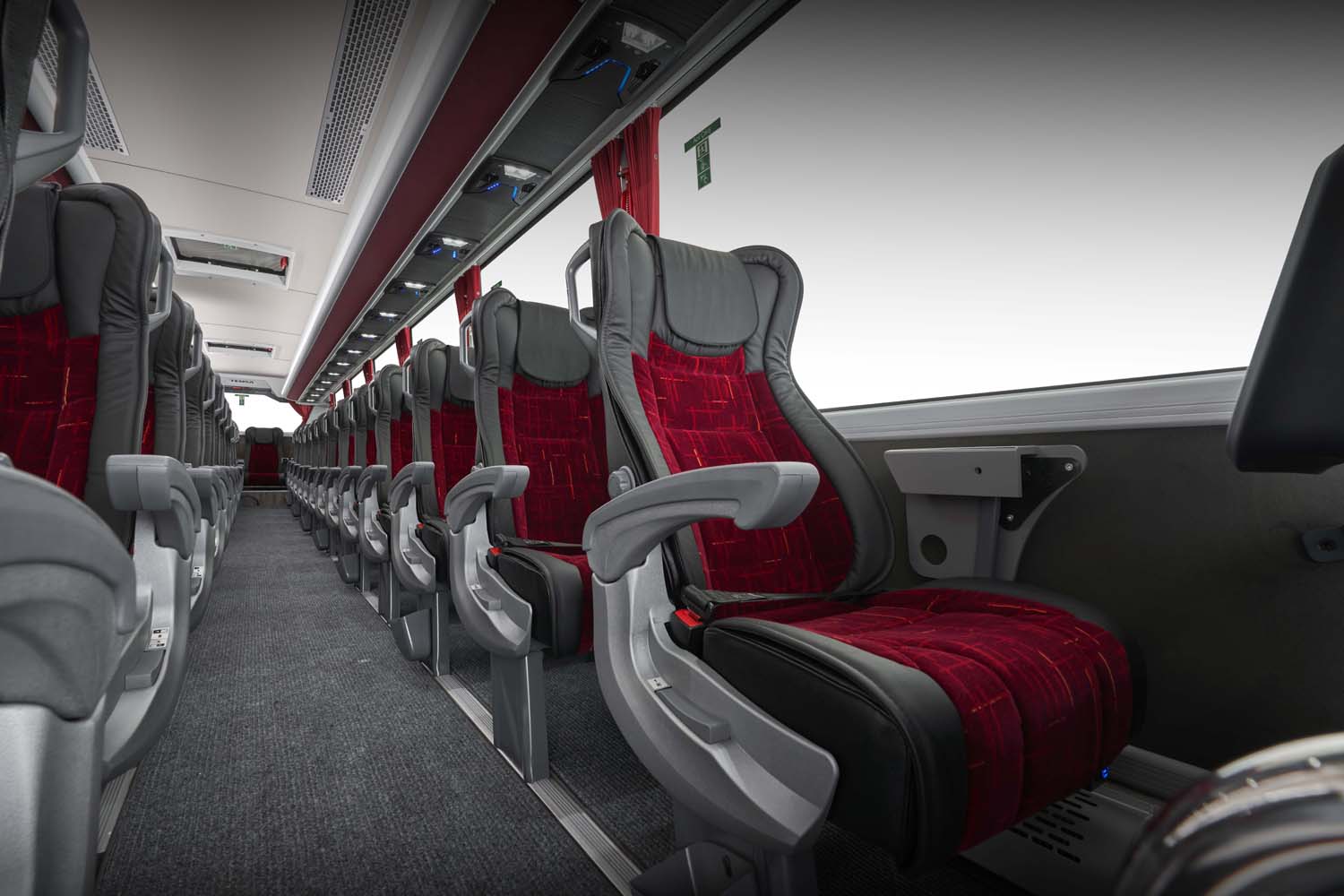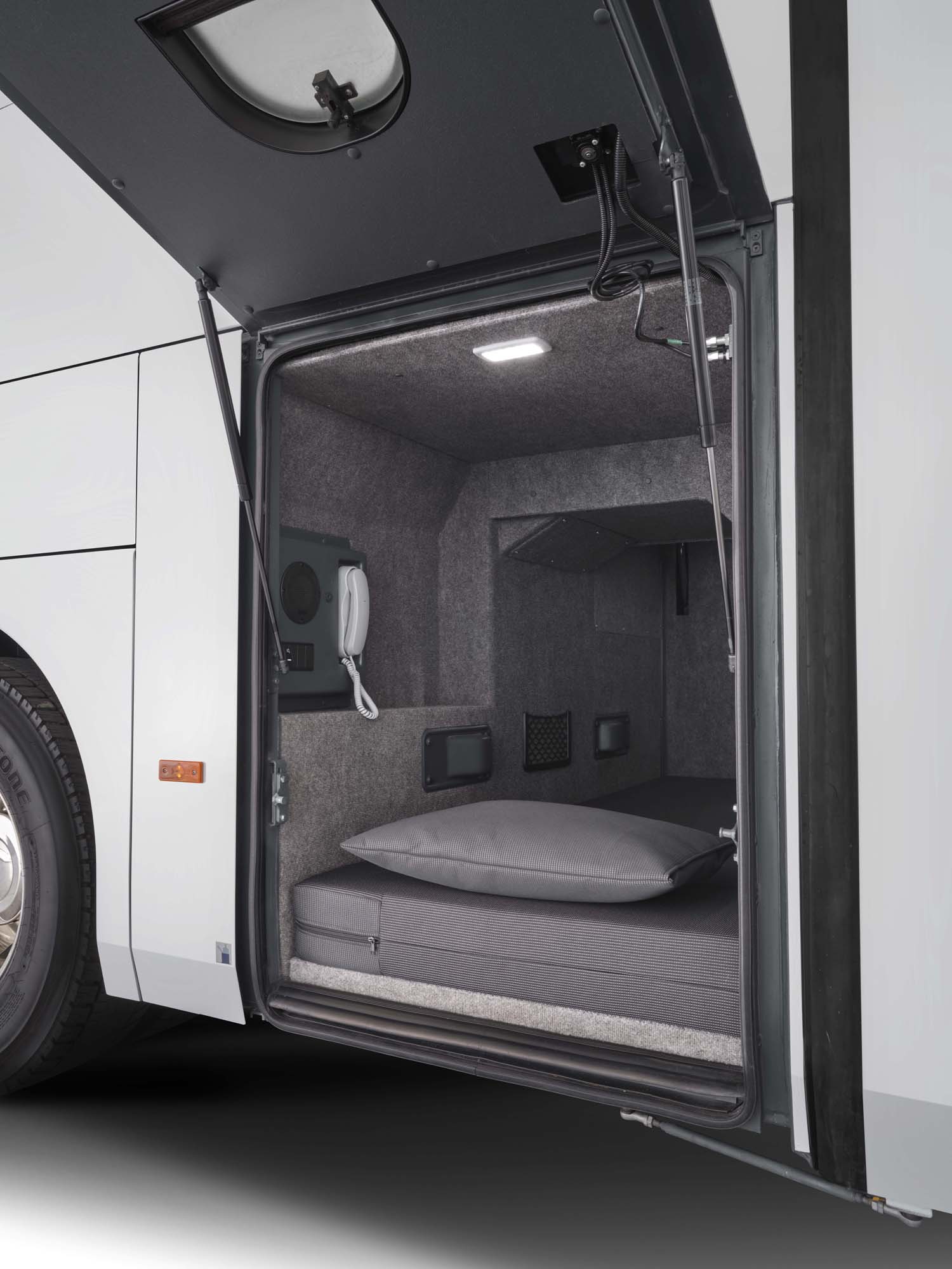 Detalles pensados para mejorar la experiencia: entrada curva rediseñada con pasamanos suaves, iluminación ambiental, portaequipajes cerrados y seguros, paneles elegantes con accesorios integrados para guías turísticos, baño optimizado y área del conductor estilizada con visibilidad mejorada.