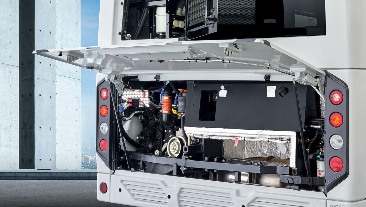 Les masques avant et arrière segmentés facilitent l’entretien et réduisent les coûts d’exploitation. Dans la zone conducteur, le design épuré et ergonomique place le confort au cœur de l’expérience de conduite.